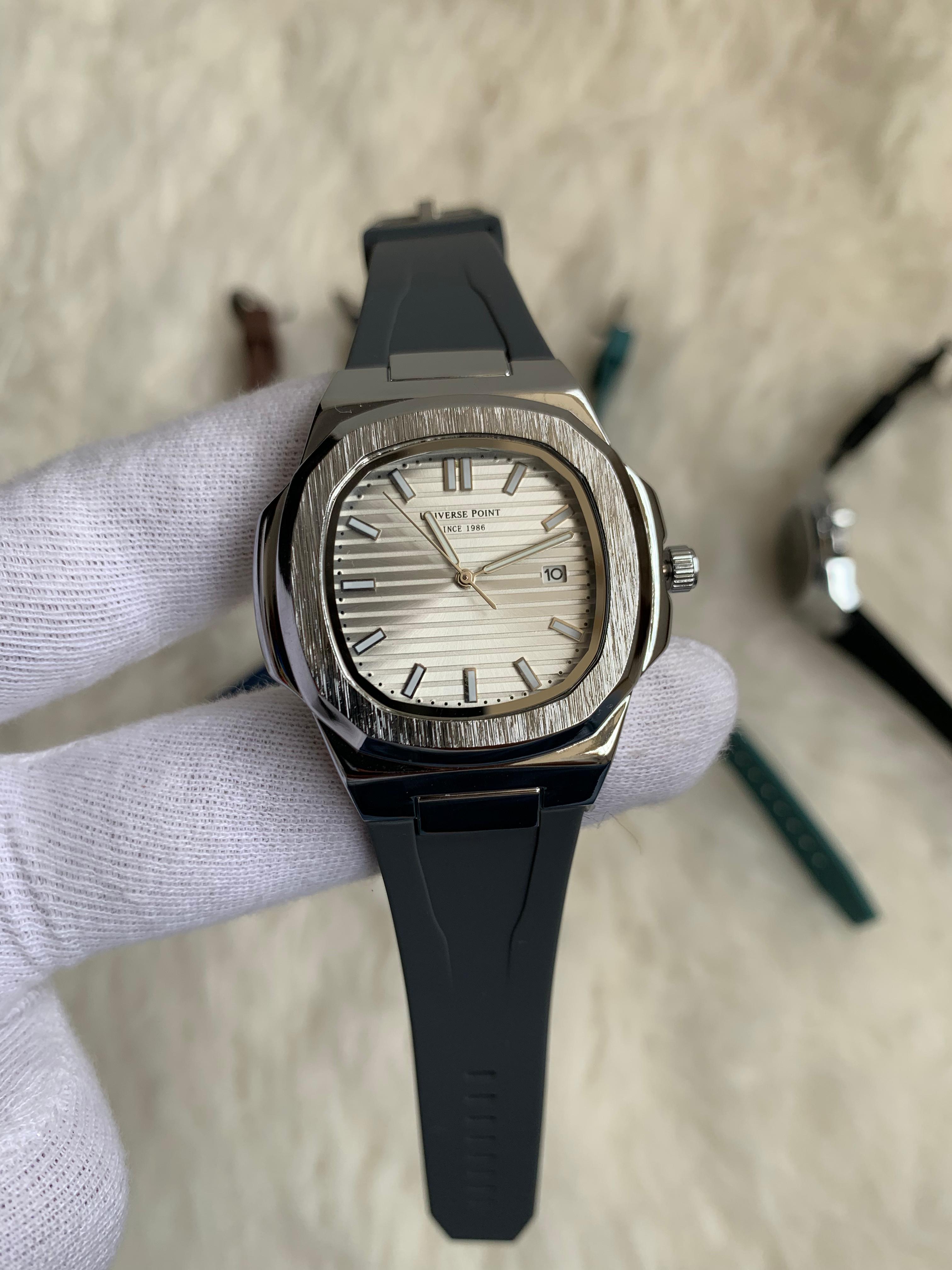 A perfect balance of sporty elegance and everyday versatility, the Universe Point Nautic Edition features a brushed bezel, textured dial, and minimal date display for a clean, modern look. Its rounded-square case design adds a contemporary touch, while the comfortable strap ensures it’s ideal for both casual wear and refined occasions. A reliable statement piece for those who appreciate unique aesthetics with timeless appeal.